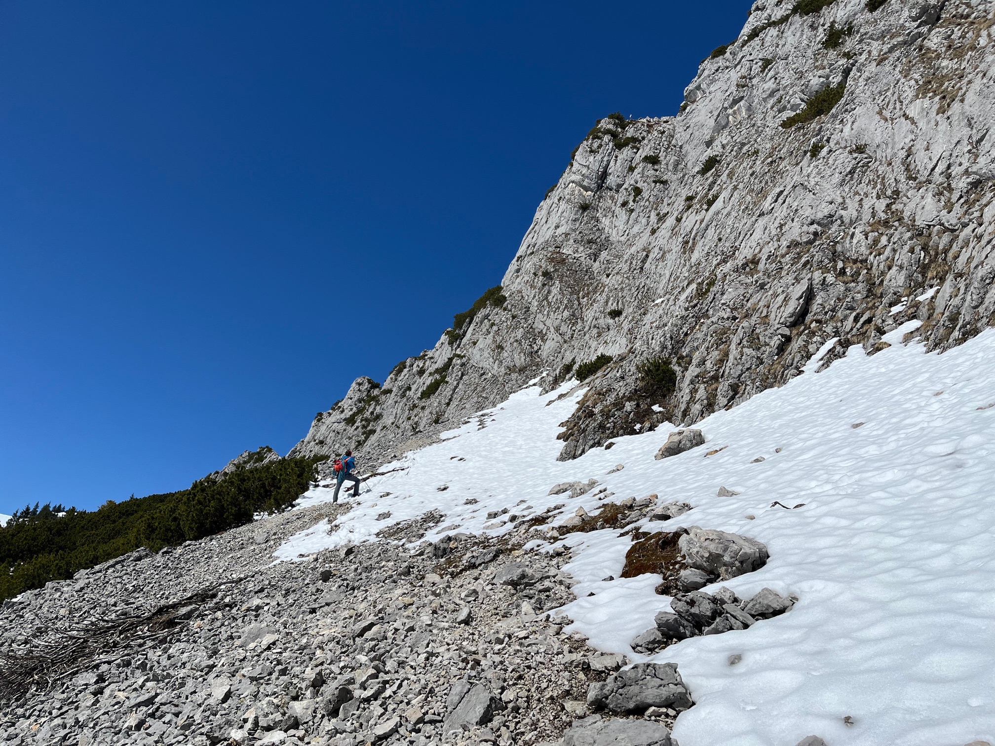 Etwas Mehrseillängenklettern in der Ruchenköpfe Südwand. Der Zustieg (und vor allem der Abstieg!) war leider sehr tiefer Schnee. Schöne Kletterei, die sich so früh in der Saison aber leider sehr schwer angefühlt hat.